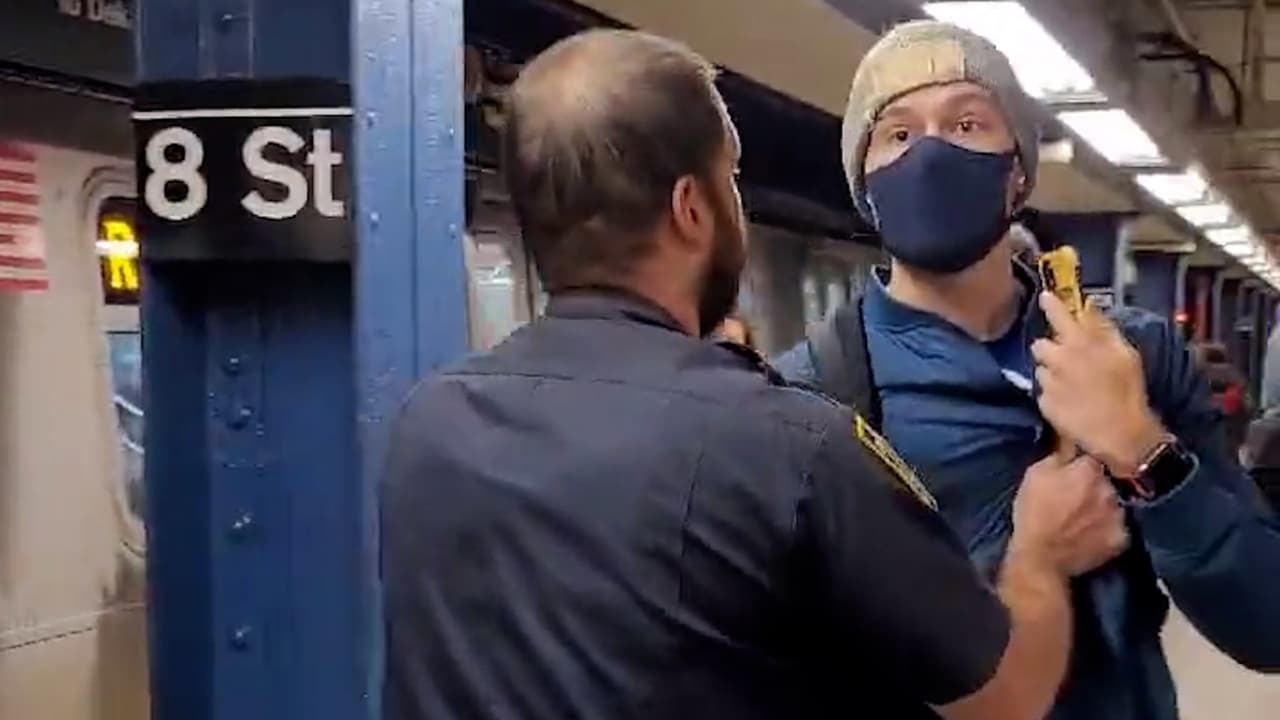 Andrew Gilbert, de 27 años, fue sacado a empujones de la estación en Manhattan después de enfrentar a los dos agentes que no tenían puesta la mascarilla. Más noticias aquí.