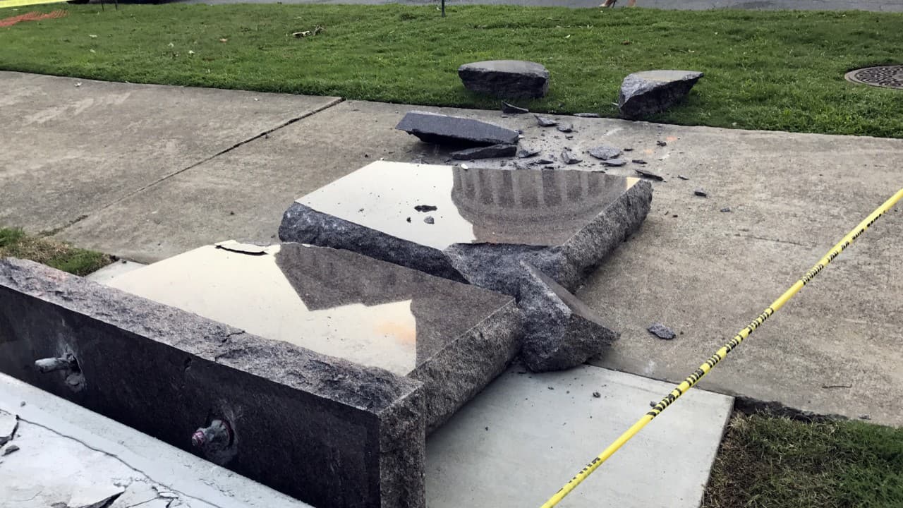 Un monumento a los 'Diez Mandamientos' que apenas tenía 24 horas de haber sido inaugurado frente al Capitolio de Arkansas fue destruido por un sujeto que lo derribó con su carro.