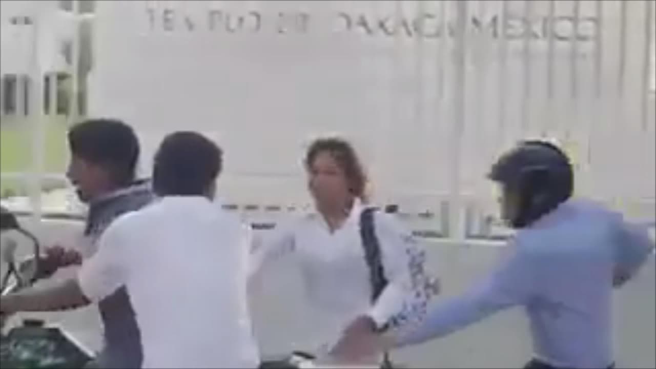 La grabación muestra cómo un hombre intenta huir en la motocicleta cuando es detenido por un grupo de personas que lo golpean y lo insultan. Los medios locales informaron que el suceso ocurrió en Oaxaca.