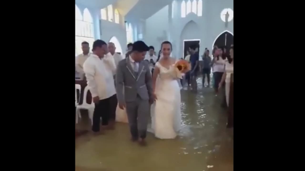 Ni las fuertes lluvias monzónicas ni las inundaciones que dejaron fueron suficiente para evitar que una pareja en Filipinas se diera el 'sí quiero'.