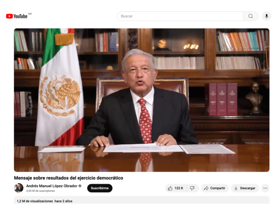 El video citado e incluido en las notas fue publicado también el 10 de abril de 2022 en el canal de Youtube del entonces presidente con el título “Mensaje sobre resultados del ejercicio democrático”.