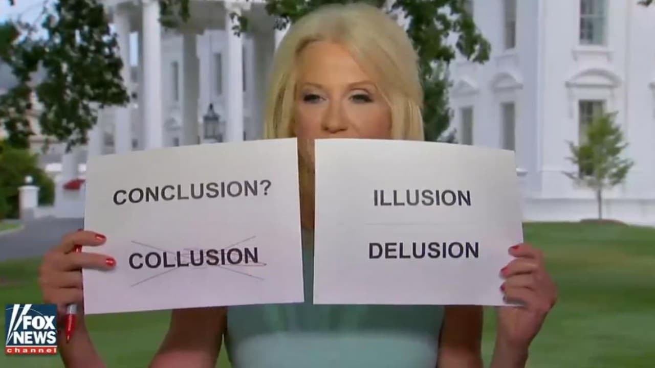 Video: Asesora de Trump desata burlas con una demostración “escolar” para asegurar que no hubo colusión con Rusia