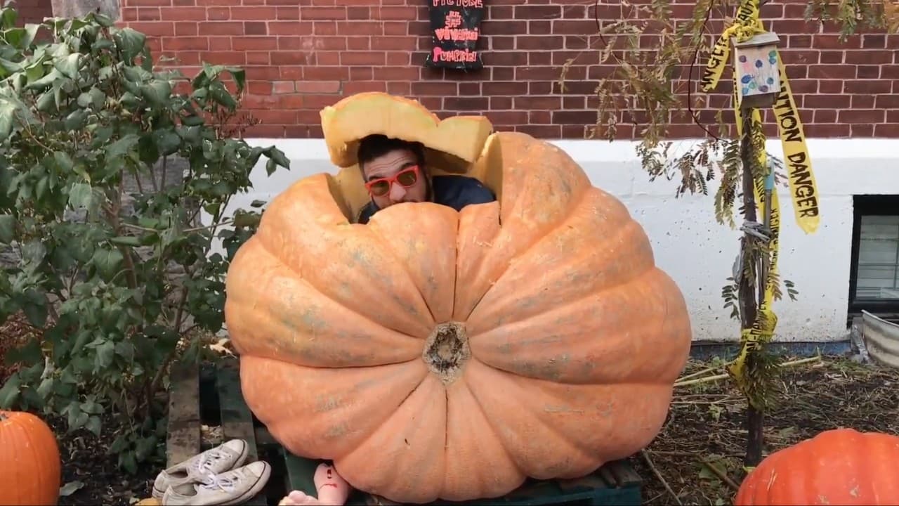 El canadiense David Freiheit superó su récord personal de años pasados al tallar una calabaza de 1,200 libras. Pero para tallarla debió usar una motosierra: "Fue como cortar mantequilla", dijo.