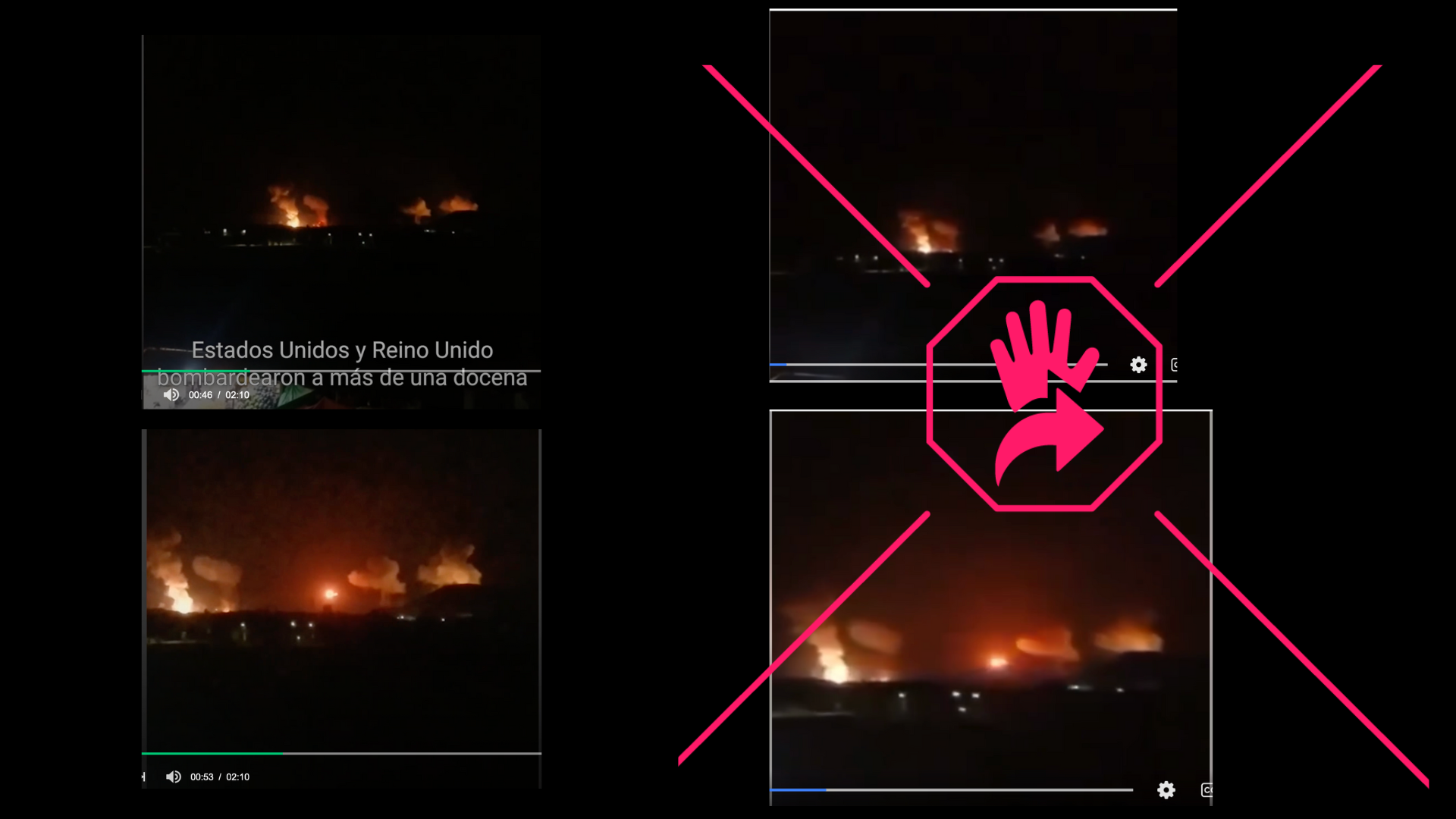 En e lDetector realizamos una búsqueda inversa de imágenes en Google Lens, y encontramos las mismas en varias notas periodísticas publicadas en enero de 2024, entre ellas una de Univision Noticias. Al comparar el contenido con el que estamos verificando, identificamos los mismos destellos de fuego en la noche, el sonido de perros ladrando y a una persona hablando en árabe.