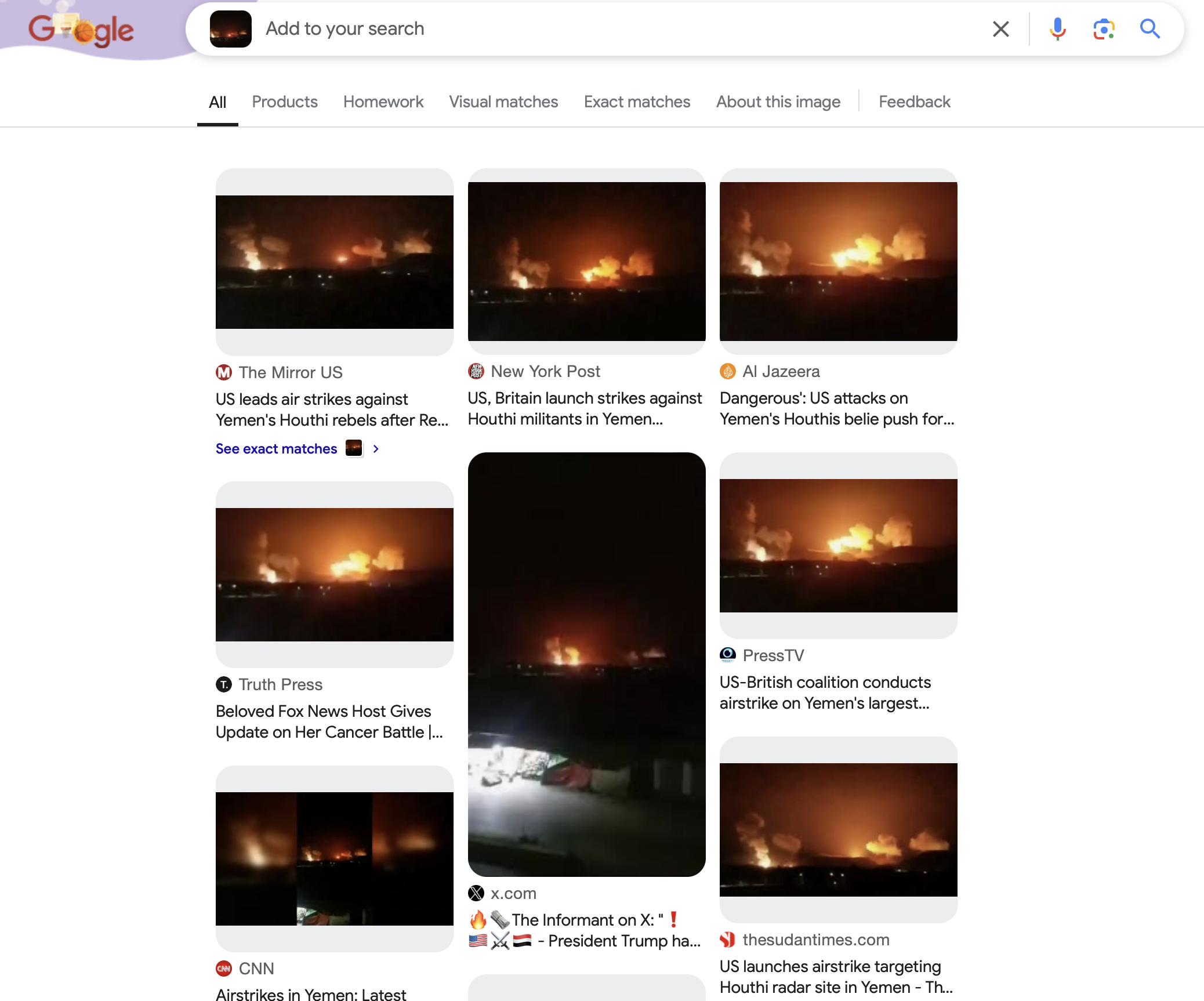 Es falso que ese video de bombardeos muestre un ataque de los hutíes contra el portaviones USS Harry S. Truman en Yemen en marzo de 2025, durante la administración de Donald Trump, como afirma una publicación en Facebook. Las imágenes están fuera de contexto: en realidad, corresponden a un ataque de Estados Unidos y el Reino Unido contra los hutíes en 2024. En elDetector lo verificamos mediante una búsqueda inversa de imágenes en Google Lens. Encontramos las mismas imágenes en reportajes publicados en enero de 2024 por Univision Noticias y otros medios, donde informan sobre un ataque de Estados Unidos y el Reino Unido contra los hutíes. Esto ocurrió durante la administración de Joe Biden, no la de Trump. Los medios explicaron que la ofensiva fue una respuesta a los ataques de los hutíes contra barcos británicos y estadounidenses. Lee aquí cómo escogemos y asignamos nuestras etiquetas en elDetector.