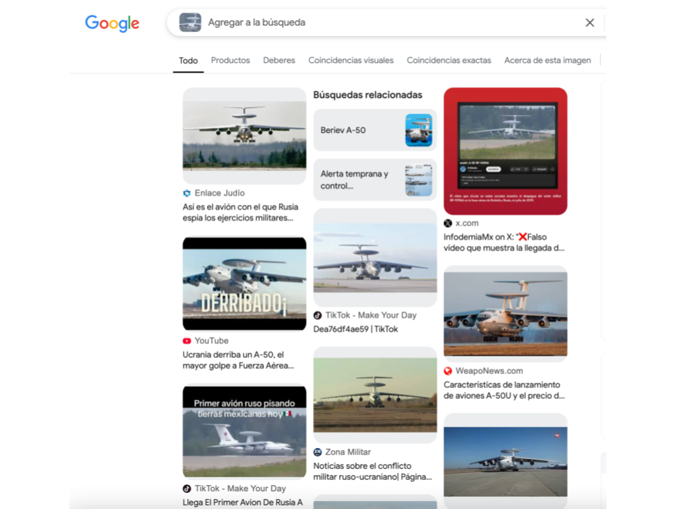 Desde elDetector realizamos una búsqueda inversa de imágenes en Google Lens y encontramos un video de 2:56 minutos en YouTube el 5 de julio de 2019 con el clip del avión que estamos chequeando. El título de la publicación está en ruso y dice “Despegue del A-50 RF-93966”. El material fue publicado por KHMedia, un canal dedicado a videos de aviación y avistamiento de aviones.