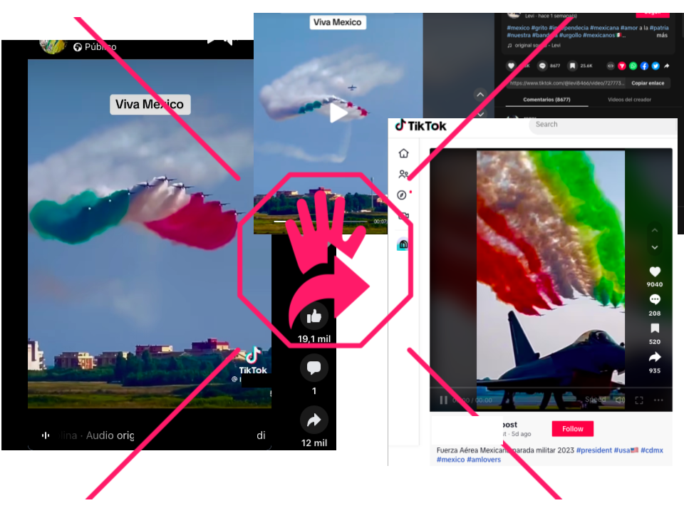“Viva México” es el mensaje junto al que se ha difundido el video en Facebook, donde superó 792,000 reproducciones hasta el 19 de septiembre de 2023. En TikTok, la misma grabación con las etiquetas “México”, “grito”, “independencia”, sumaba más de 5.7 millones de visualizaciones y 473,000 "me gusta". Mientras que otra versión en TikTok, con más de 141,000 reproducciones, daba a entender que las imágenes mostraban una “parada militar 2023” de las Fuerzas Aéreas Mexicanas.