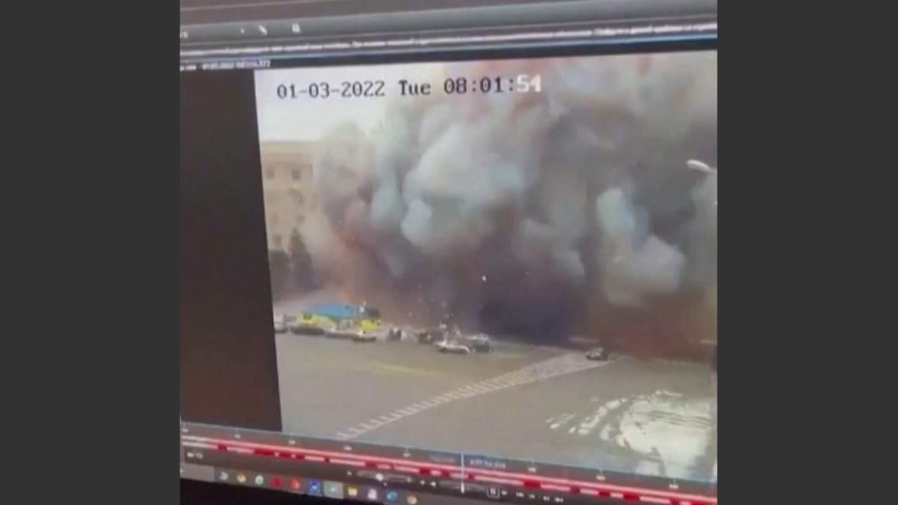 El ministro ucraniano de Asuntos Exteriores compartió el video de seguridad en el que se observa el momento en que un misil impacta en la estructura gubernamental en la segunda ciudad de Ucrania. Más noticias aquí.