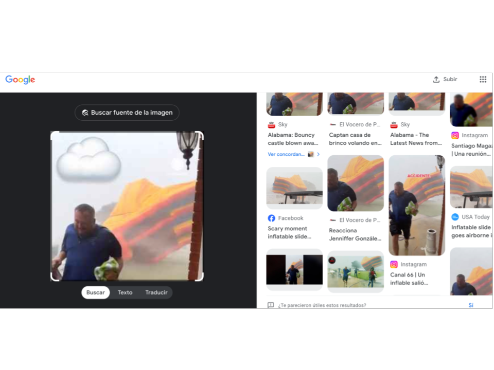 Sky News, por ejemplo, publicó la secuencia con el titular “Alabama: Tormenta eléctrica destruye un castillo inflable”, e informó de que esta atracción infantil voló después de que una tormenta eléctrica sorpresiva azotara ese estado.