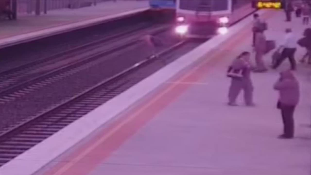 El hombre se cruzó los rieles del tren en Victoria, Australia cuando un tren iba pasando.