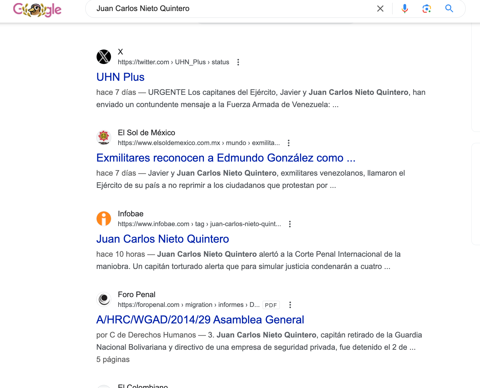 En otro informe disponible en la web de Foro Penal se incluye a Javier Nieto en un listado de presos políticos en el período chavista. En el documento se puede ver al lado de su apellido la frase: “En el exilio”. También el documento del Consejo de DDHH de las Naciones Unidas se señala que, tras cumplir su condena, pidió asilo a Estados Unidos.