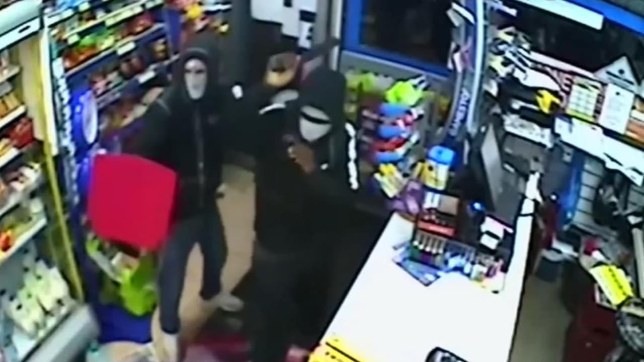 Dos hombres con máscaras intentaron robar una tienda en Northampton, Inglaterra. Sin embargo, terminan huyendo.