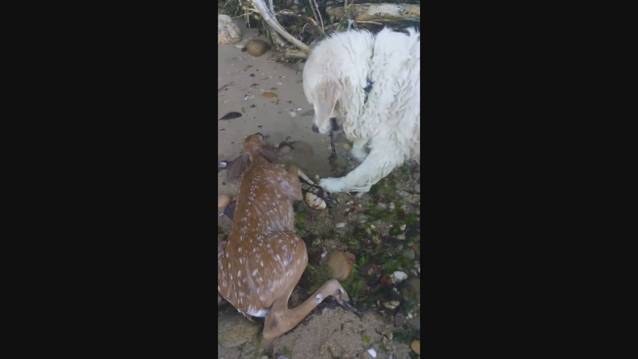 Video: El heroico rescate de un perro a un ciervo bebé de las aguas en NY