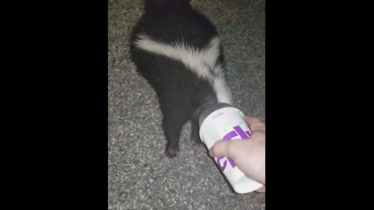 Video: El momento en que liberan la cabeza de un zorrillo atorada en un vaso de papel
