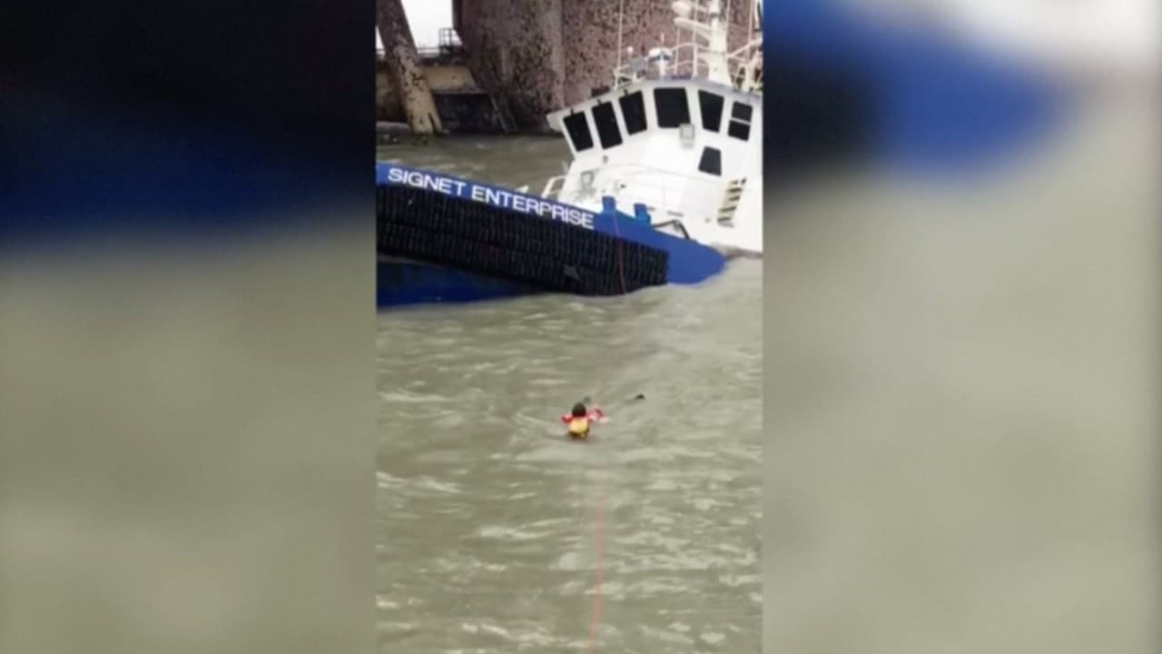La Guardia Costera de Estados Unidos rescató a estas personas mientras se encontraban atrapadas al interior de un barco remolque cerca de Port Aransas, Texas.