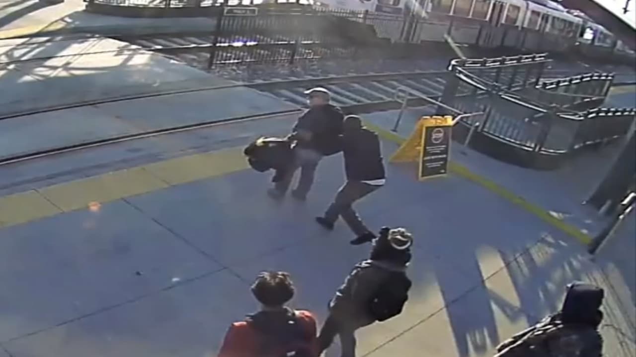 Una cámara de seguridad muestra a un joven correr para evitar que la persona con discapacidad visual entre en la vía del tren peatonal en Colorado.