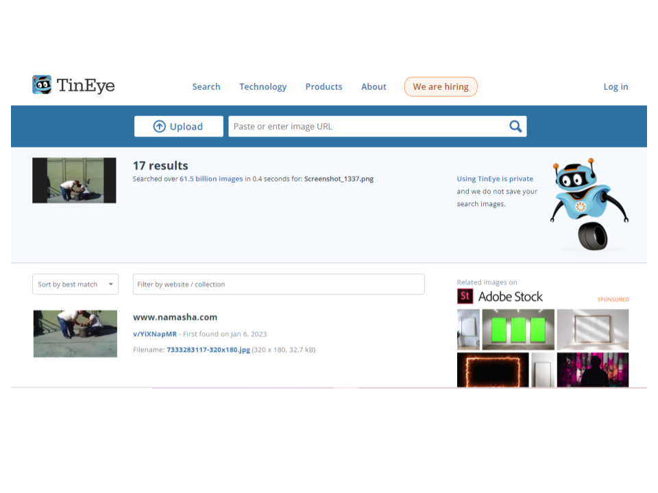 Búsqueda inversa de imágenes en TinEye. 2 de agosto de 2023.