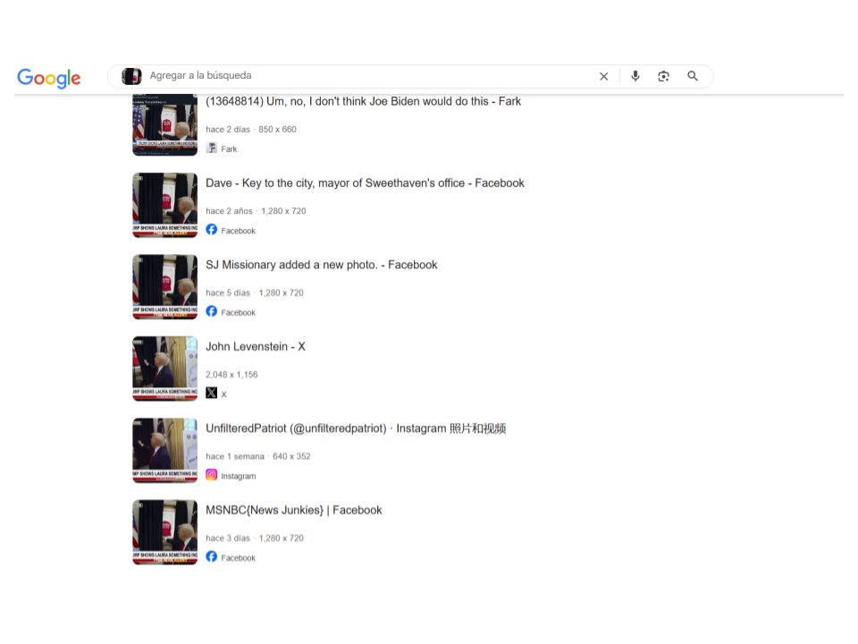 Una búsqueda inversa de imágenes en Google Lens nos llevó a resultados de Reddit, Instagram y YouTube en los que se ve la gorra “Trump 2028” supuestamente enmarcada y otras versiones del mismo video, en formato “ meme”.