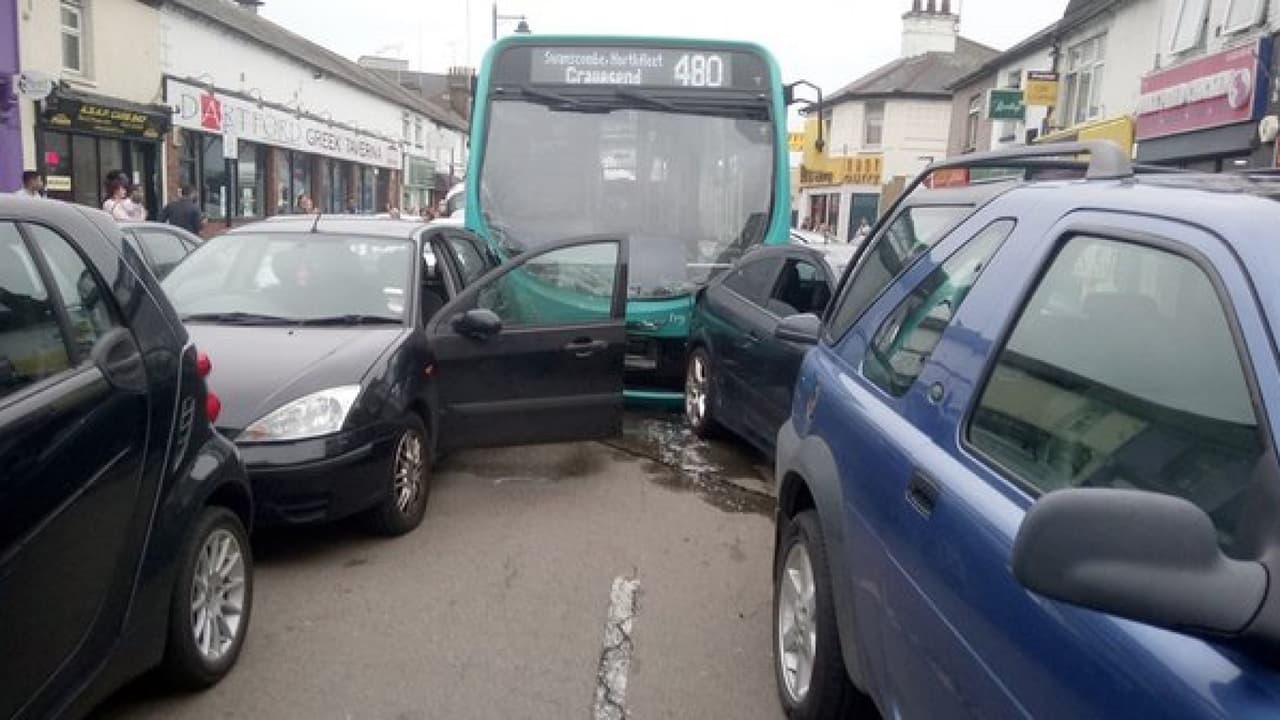 Video: La escena después de que un autobús se estrellara contra 25 autos estacionados dejando 14 heridos
