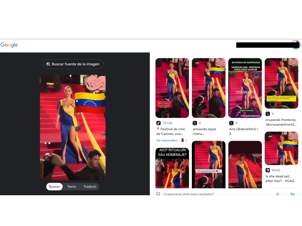 Desde elDetector realizamos una búsqueda inversa de imágenes en Google Lens y encontramos que el video no se grabó en agosto de 2024, sino que circula, al menos, desde el 22 de mayo de 2023 y muestra realmente una alfombra roja del Festival Internacional de Cine de Cannes, en Francia. Fue retomado por varios medios de comunicación y muestra a una mujer ucraniana manifestándose en contra del conflicto bélico entre Rusia y su país.