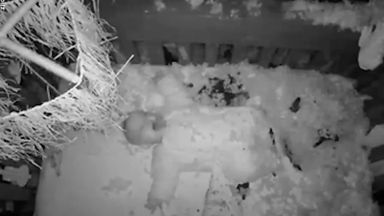 Un monitor para bebés capturó todo. Se puede ver cómo el árbol destruye el techo, el bebé comienza a llorar cuando escombros le caen encima, pero afortunadamente salió ileso.