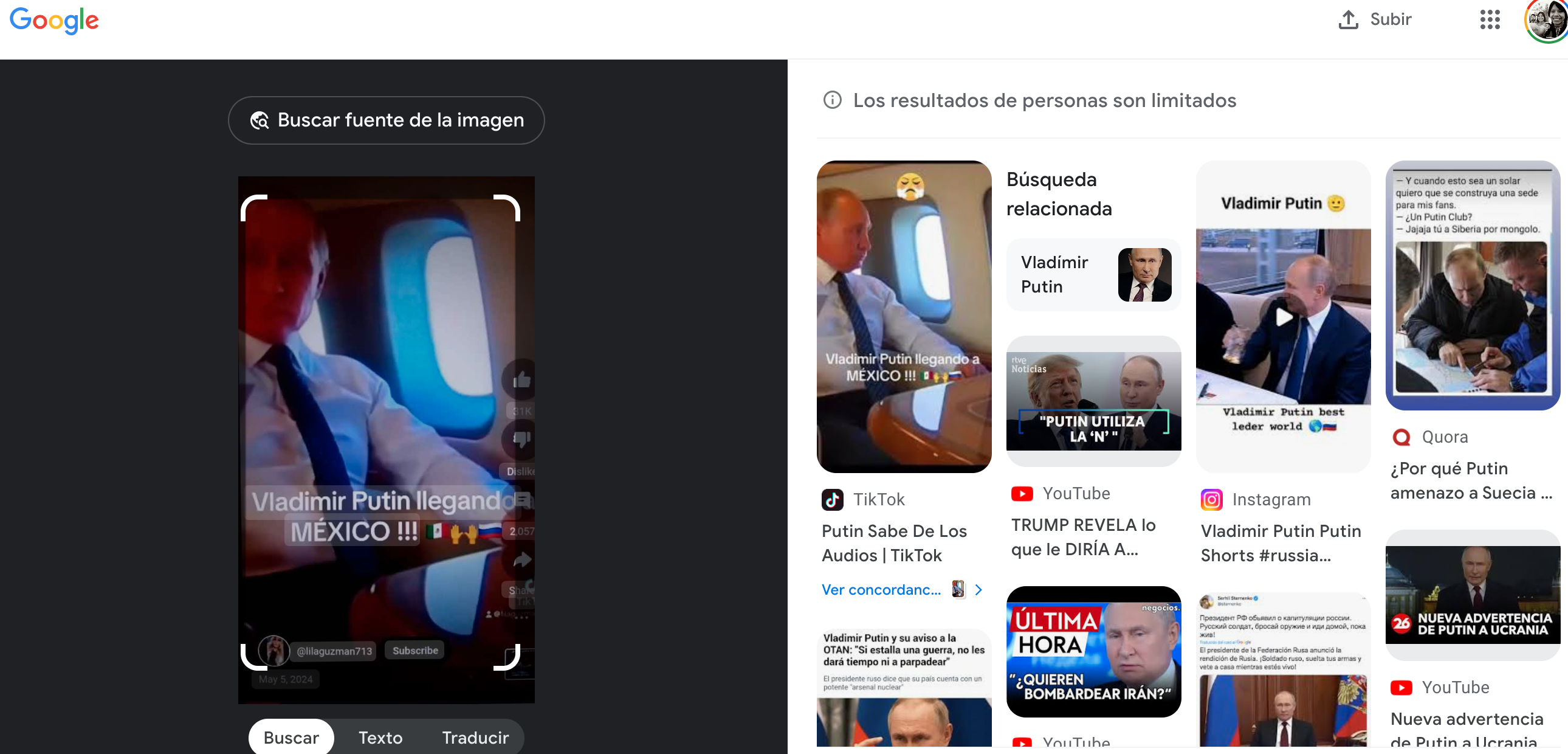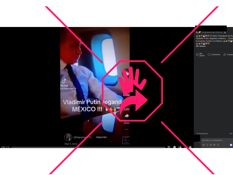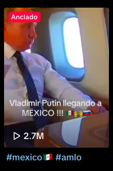 Por las imágenes que aparecen en la grabación, encontramos que esta proviene de TikTok y que en esa red fue publicada a finales de abril de 2024 haciendo la misma afirmación sobre Putin llegando a México y ya acumula más de 2.7 millones de reproducciones.