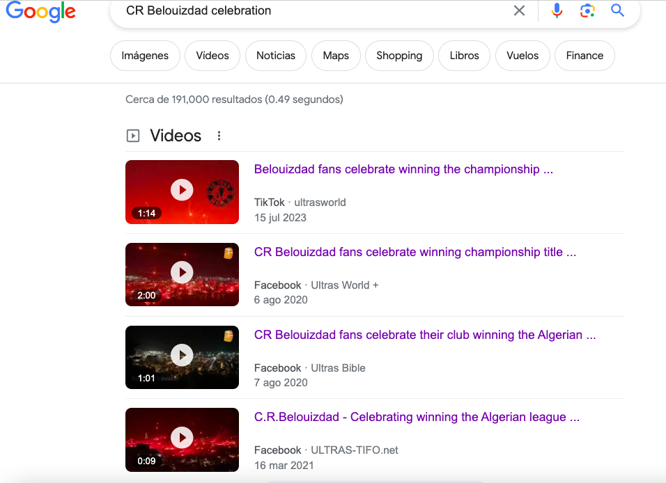 En elDetector no pudimos establecer la fecha exacta en la que fueron grabadas las imágenes, pero queda claro que son previas a octubre de 2023 y que corresponden a celebraciones de los hinchas del CR Belouizdad en Arlia.