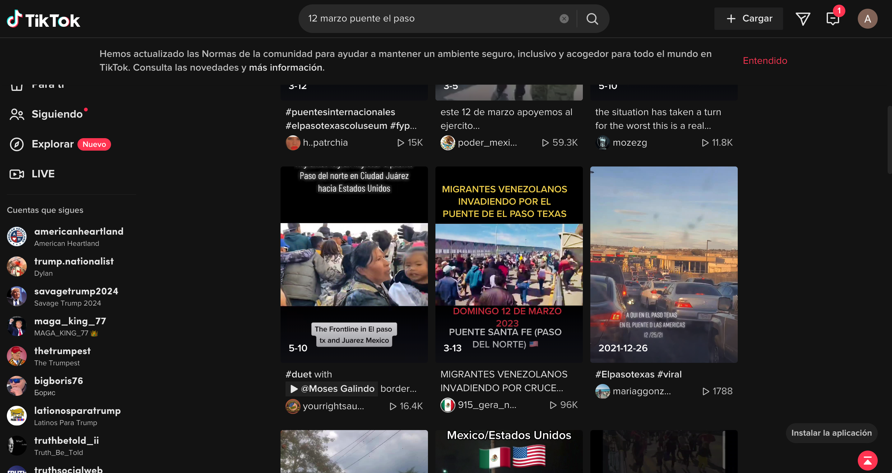 TikTok. Búsqueda utilizando las palabras clave “12 marzo puente el paso”. 19 de mayo de 2023.