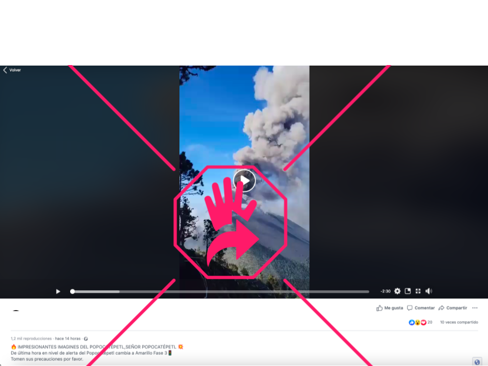 Ante el aumento de actividad que ha registrado el Popocatépetl en los últimos días, publicaciones similares a la que estamos verificando –en las que imágenes del Volcán del Fuego son difundidas como si fueran del coloso mexicano– se han hecho virales en varias redes sociales y las agencias AP y AFP, así como el sitio español Newtral , también han concluido que corresponden al volcán guatemalteco.