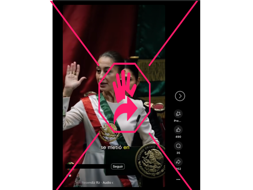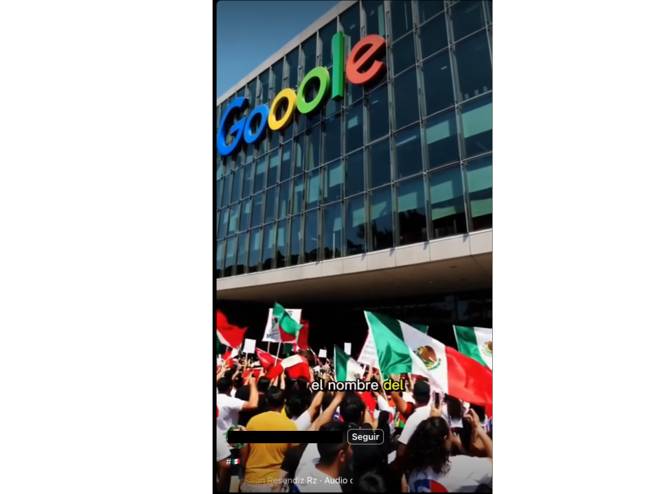 En el clip viral, una voz en off parafrasea lo que supuestamente Sheinbaum dijo en una carta dirigida a Google: “De no cumplirse dicha petición podrías enfrentar una demanda de millones de dólares. Además podríamos vernos obligados a suspender definitivamente Google en México. No es que si quieren, es que deben hacerlo”. La secuencia muestra también personas manifestándose con banderas y carteles que dicen “Golfo de México”, en inglés, afuera de un edificio con un logo de Google.