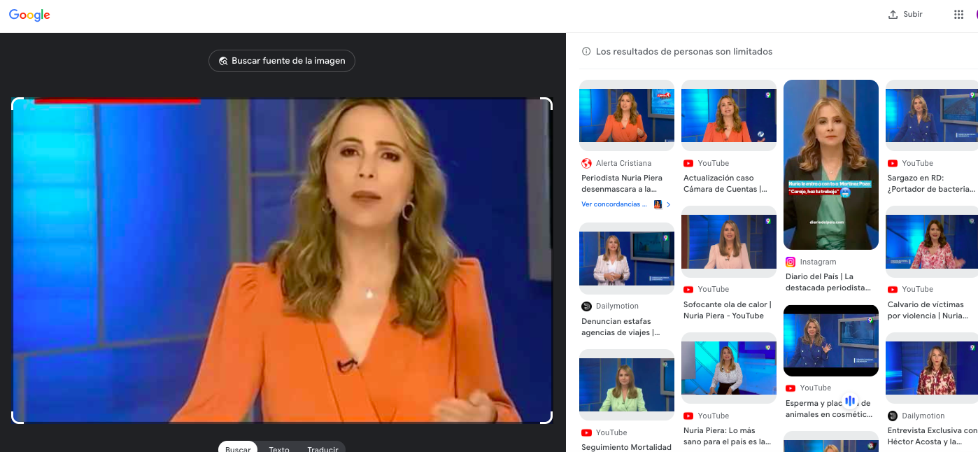 En elDetector hicimos una búsqueda inversa de imagen en Google Lens a partir de una captura de pantalla del primer clip, en el que aparece la periodista, y encontramos una nota que lleva insertado un video publicado en mayo de 2023 en la cuenta de YouTube de Color Visión Canal 9. En él, se ve a Piera con el mismo vestido naranja y también aparecen en la parte inferior de la pantalla sus redes sociales y las del programa que conduce –al igual que en el video que estamos verificando–. Sin embargo, ni la grabación ni la nota tratan sobre una plataforma para obtener ingresos estables, sino sobre una investigación de médicos con títulos falsos.