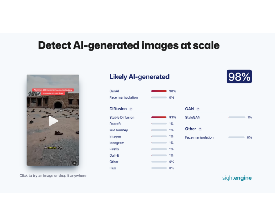 Por último la app Sightengine, otra herramienta gratuita, determinó con un 98% de probabilidad que la imagen fue intervenida mediante IA.