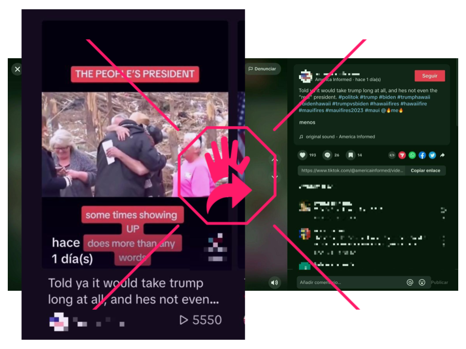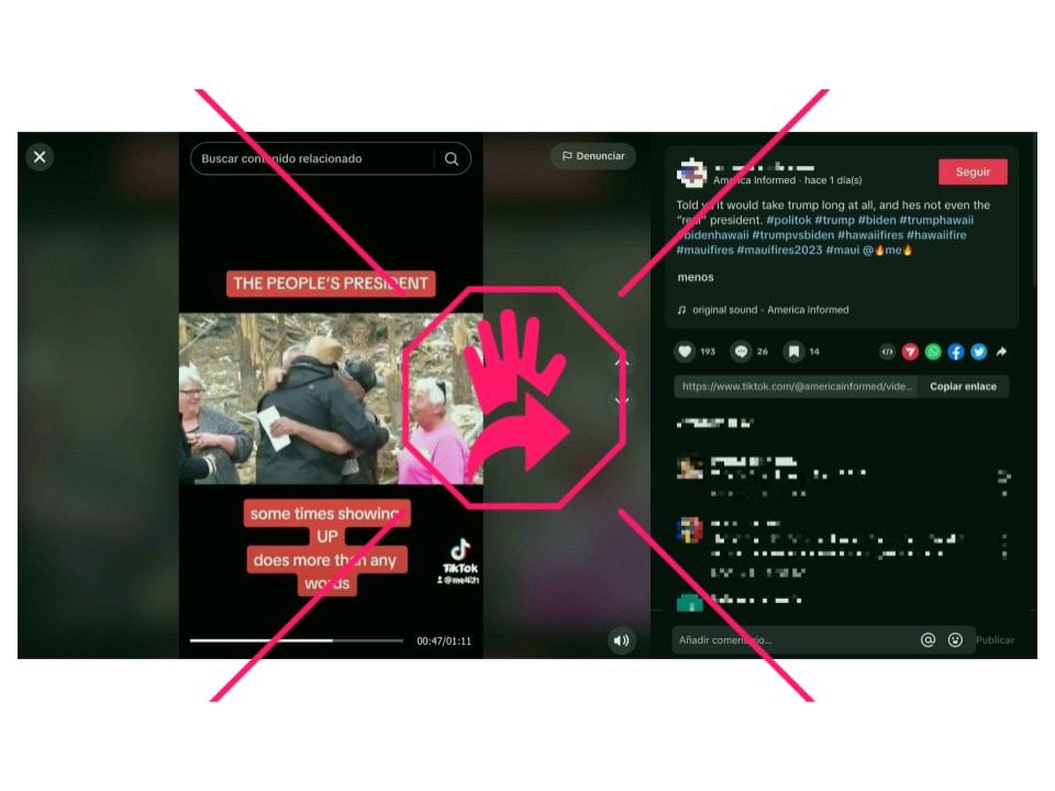 Es falso que el video que se está compartiendo en TikTok sea de Donald Trump visitando Maui, isla hawaiana arrasada por varios incendios hasta hace unos días y que, de momento, se ha cobrado la vida de más de un centenar de personas. Las imágenes están fuera de contexto: son de 2019 y fueron grabadas en Alabama.