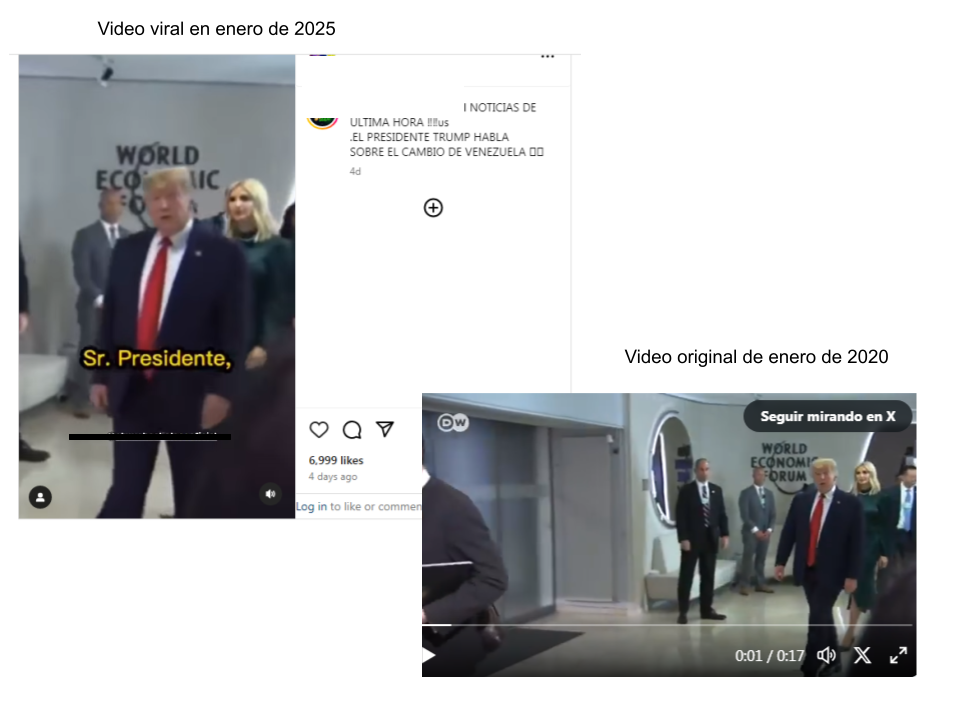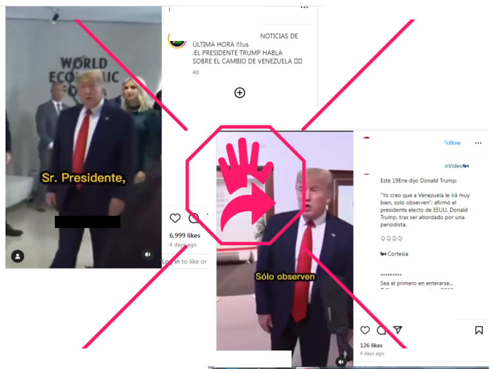 “Noticias de última hora!!!! El presidente Trump habla sobre el cambio de Venezuela”, dice una publicación en Instagram del 19 de enero de 2025, que contiene el video. Mientras que otra, que también lleva el mismo clip, asegura que “este 19Ene [sic] dijo Donald Trump: ‘Yo creo que a Venezuela le irá muy bien, solo observen’”.