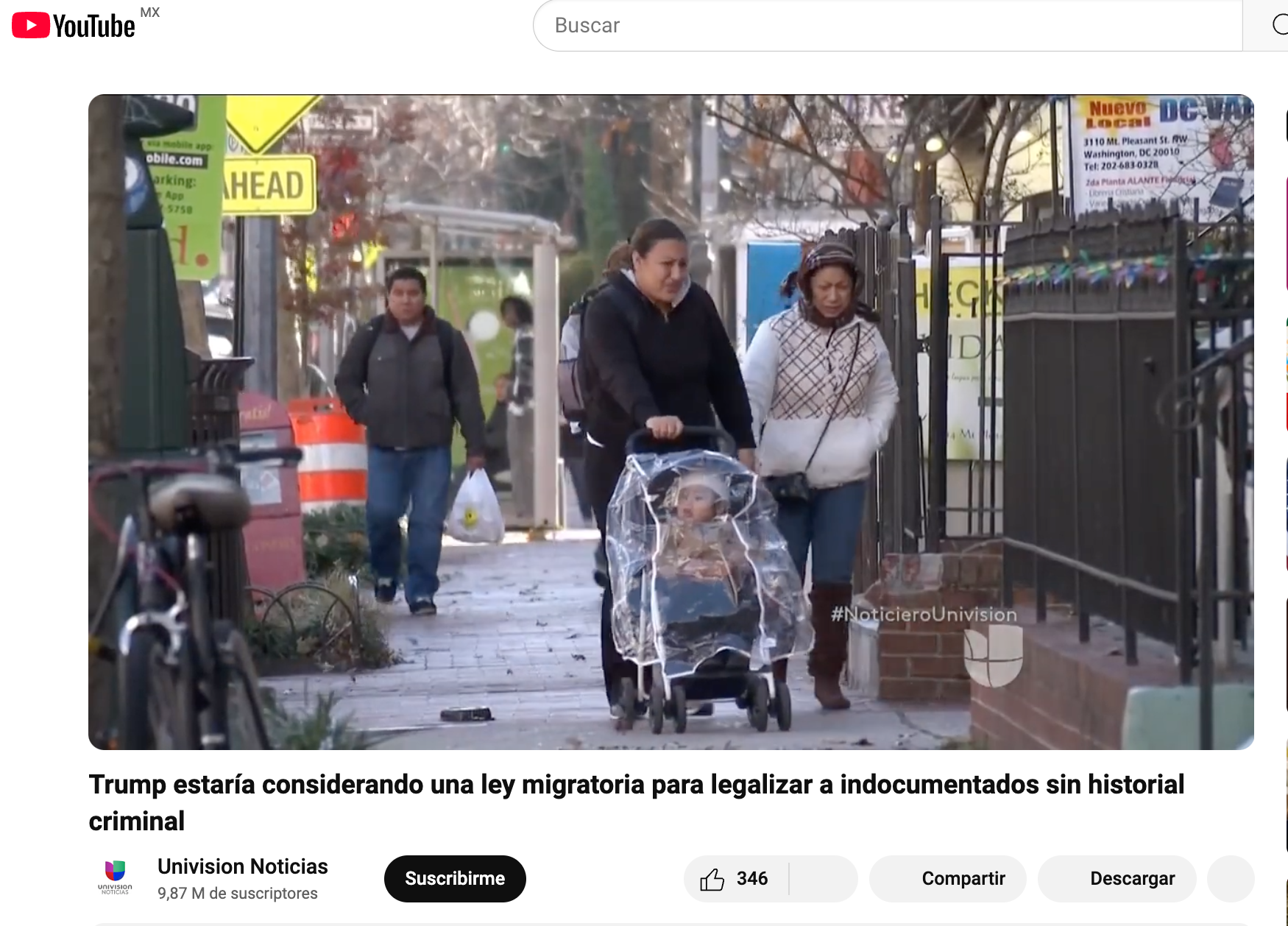 El audio que se escucha dice: “Hoy comenzamos con una noticia explosiva que podría fácilmente cambiar el destino de millones y millones de indocumentados en Estados Unidos. Escuchen bien: El presidente Trump está contemplando la posibilidad de abrirle un camino a la legalización a millones de indocumentados, siempre y cuando no hayan cometido crímenes”, señala la narradora.