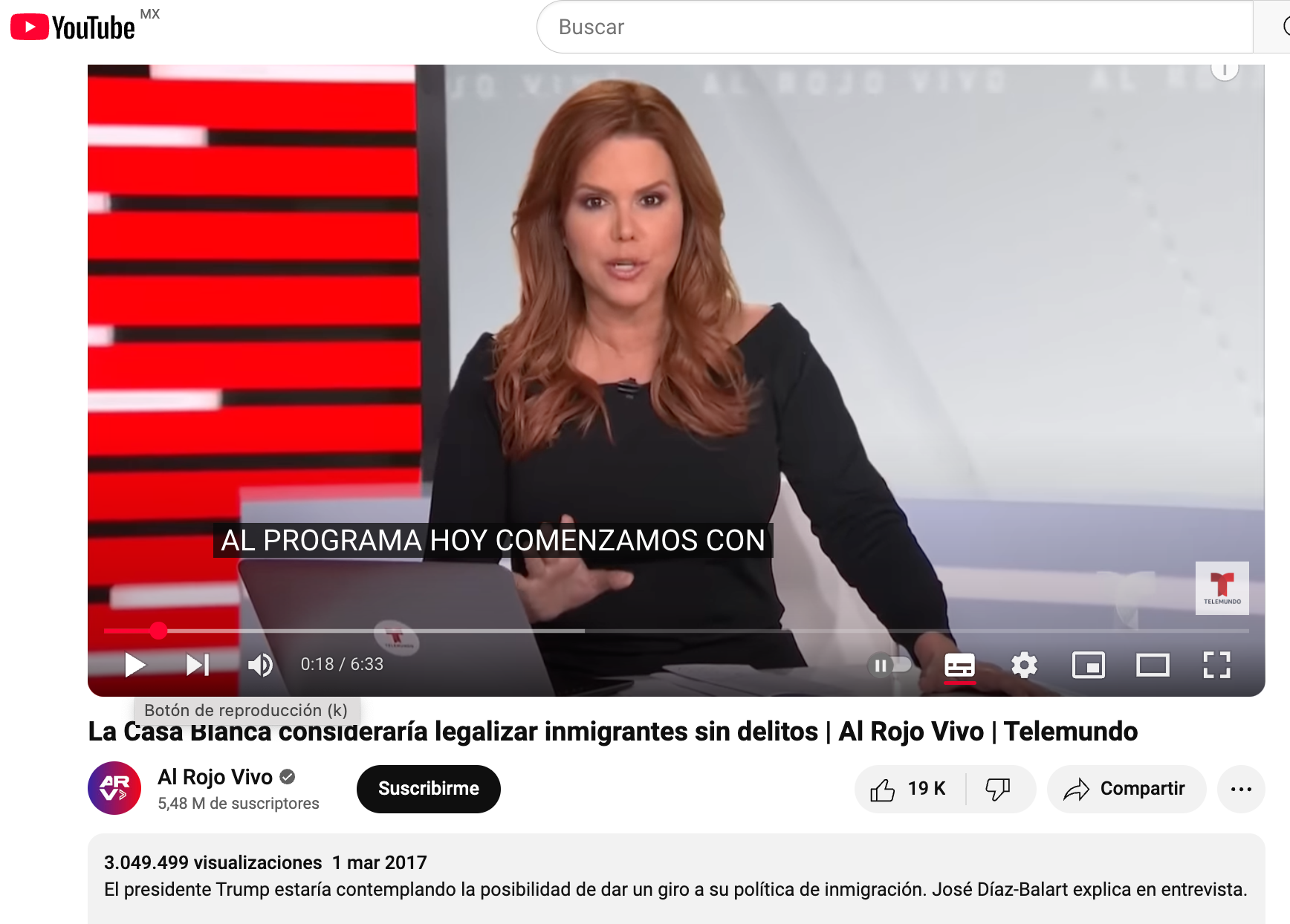 En elDetector hicimos una búsqueda en Google con palabras clave, que se mencionan en el clip que estamos verificando, y el primer resultado que esta arrojó fue un video de YouTube, compartido el 1 de marzo de 2017, en el canal del programa de Telemundo, Al Rojo Vivo.