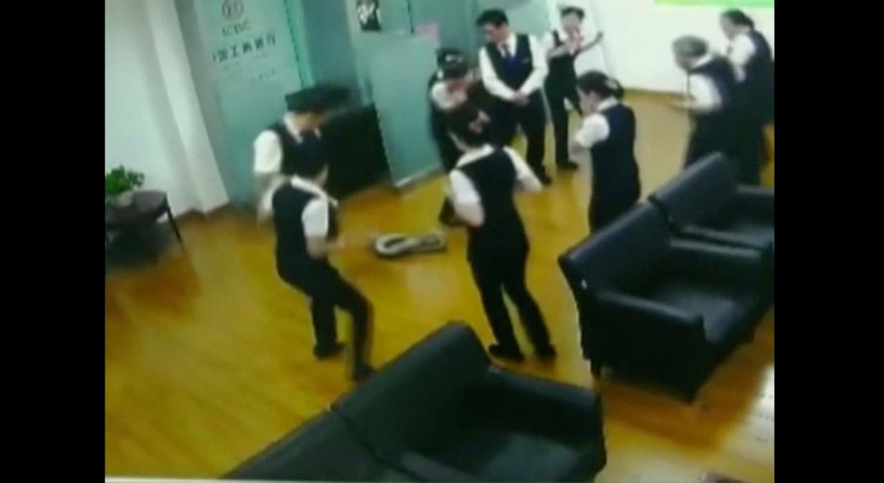 Video: Una pitón gigante cae desde el techo en medio de una reunión en un banco