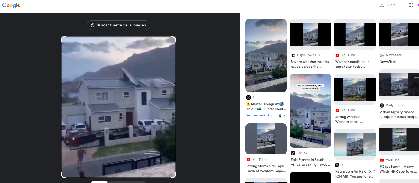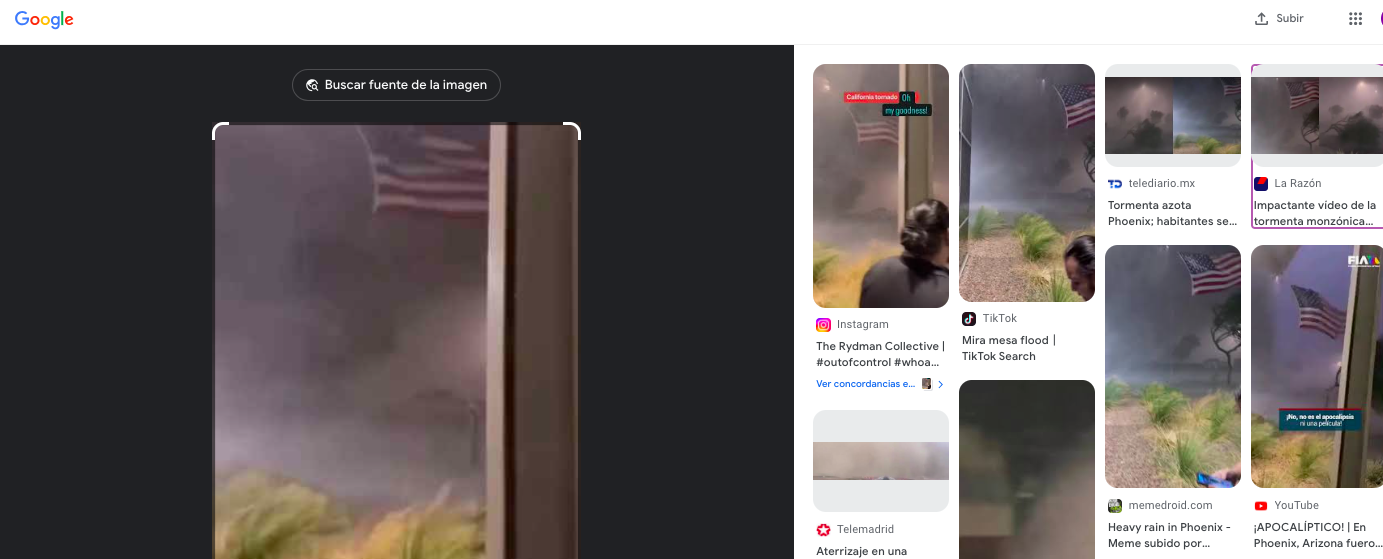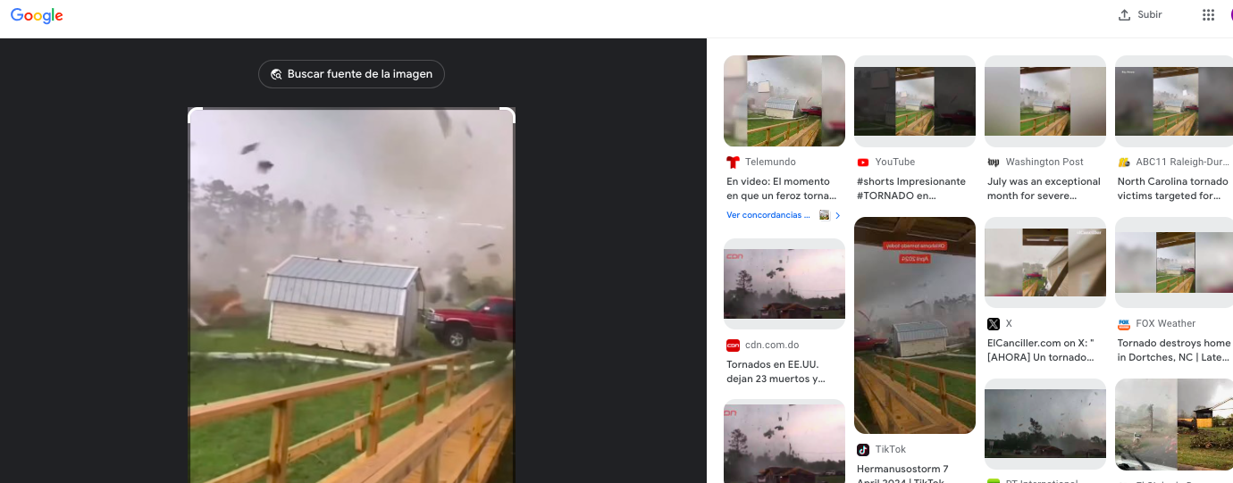 Mientras que algunas otras las encontramos compartidas en distintos medios de comunicación, mediante búsquedas inversas de imagen realizadas en Google, y en realidad eran de un tornado en Carolina del Norte en julio de 2023, de una tormenta en Arizona en septiembre de 2023 e incluso de un fenómeno meteorológico ocurrido en Sudáfrica a comienzos de abril de 2024.