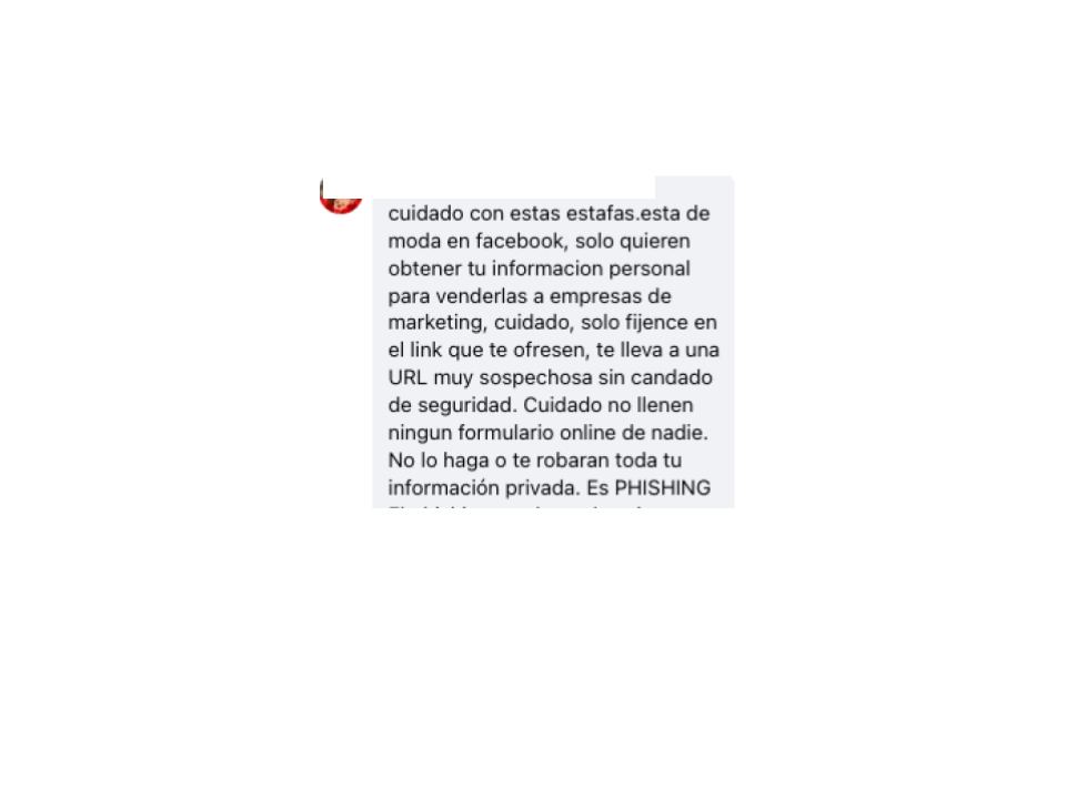 Es común encontrar en redes sociales publicaciones que usan el phishing para obtener datos sensibles de los usuarios, suplantar su identidad o estafarles mediante engaños y falsas promesas.