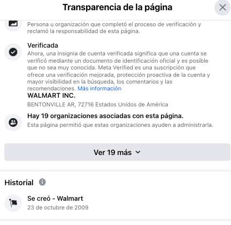 En uno de los comentarios del post, una usuaria de la red social advierte que se trata de phishing. Hay detalles que permiten darnos cuenta de que la publicación no es auténtica: al consultar la información del perfil de Facebook que la difunde encontramos que fue creado el 29 de julio de 2023 y tiene 27 seguidores (mientras que el perfil verificado de Walmart en esta red social fue creado en 2009 y tiene más de 32 millones de seguidores). Además, la publicación es compartida en forma de anuncio para lograr un mayor alcance.