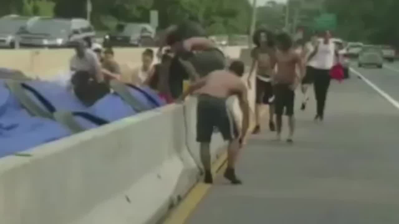 El video dura menos de un minuto, pero las imágenes son de gran violencia: un grupo de jóvenes golpean y acuchillan a otro adolescente en mitad de una carretera.