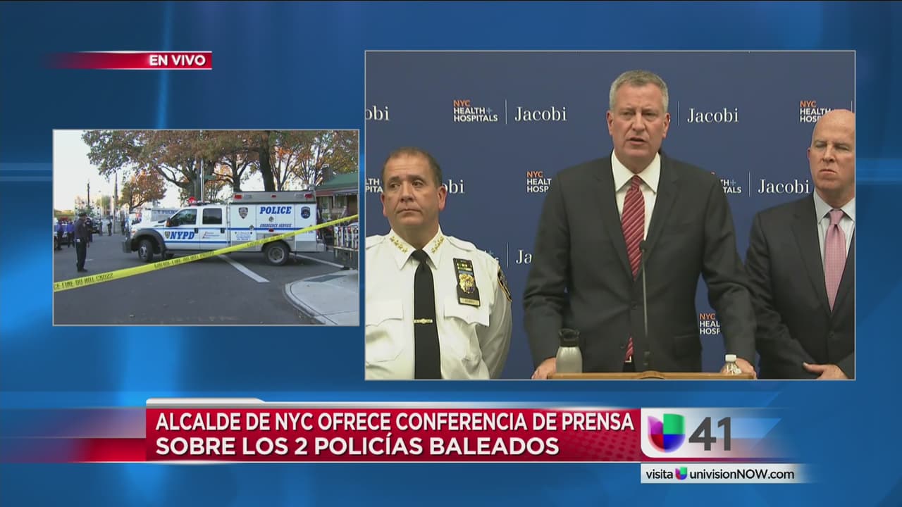 El alcalde de Nueva York, Bill de Blasio, ofreció una conferencia de prensa tras el tiroteo donde dos policías fueron baleados y uno de ellos perdió la vida.