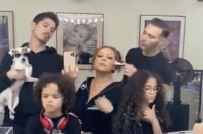 Mariah Carey wins the "Flip The Switch" challenge. The songstress released a Tik Tok video from her dressing room with her festive St. Patrick's Day video. The video features her boyfriend Bryan Tanaka, her makeup artist Kristofer Buckle, "Dem Babies" Moroccan and Monroe and two of her Jack Russell terrier dogs.