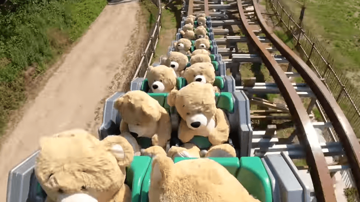 A Dutch theme park had some fun placing 22 stuffed bears strapped into a roller coaster. The park had filmed the bears come to life enjoying the one-minute coaster ride.