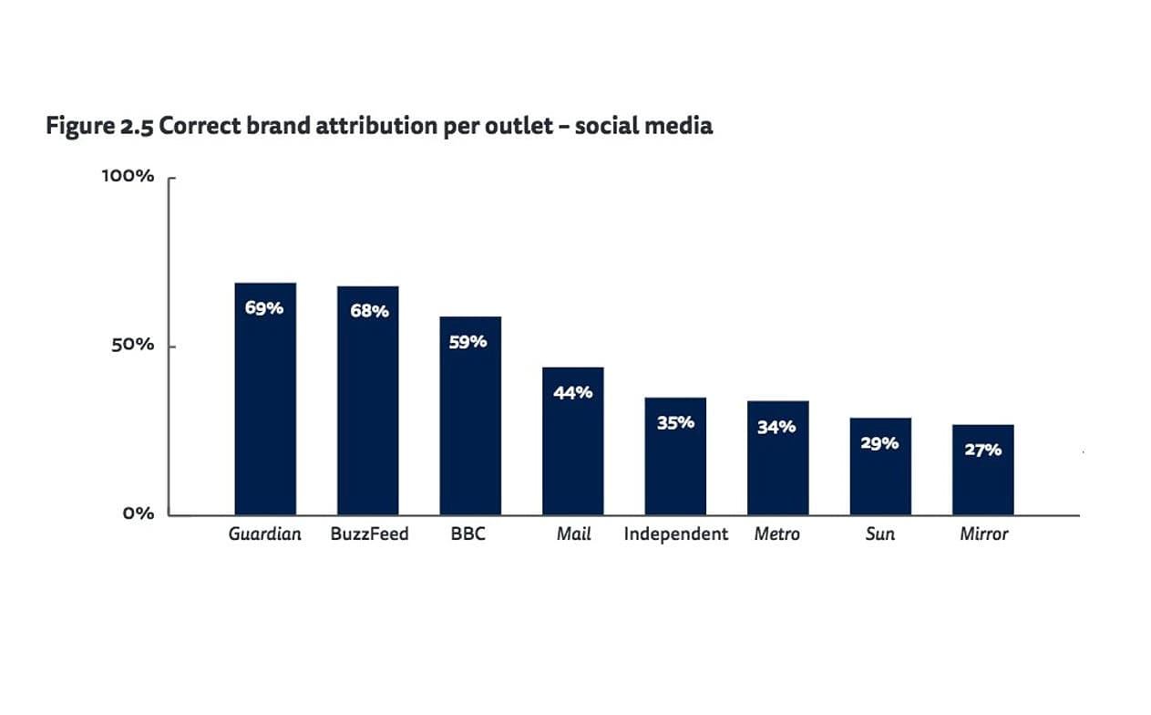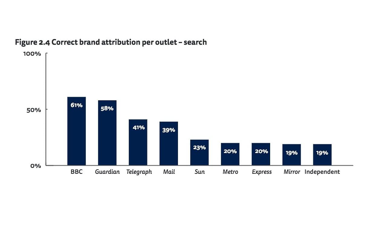 El estudio del Instituto Reuters encontró que las organizaciones con una marca fuerte pueden hacerse visibles incluso a través del ruido que se genera en la red. Cundo se llega a ellos a través de una plataforma de búsqueda, BBC News, The Guardian y The Telegraph fueron los medios noticiosos más recordados.