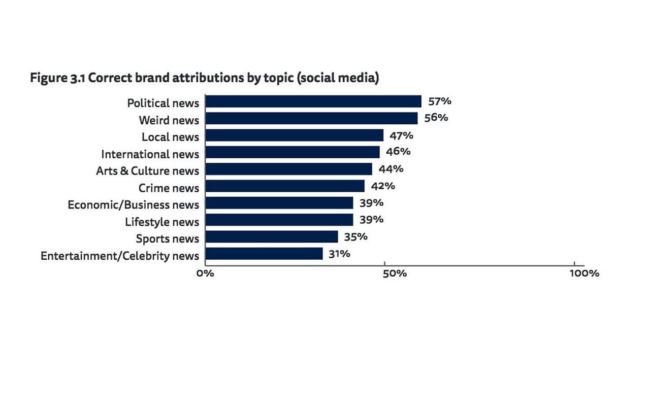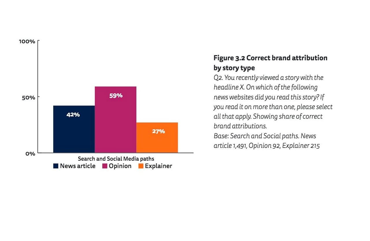 El 59% de los usuarios de redes sociales y plataformas de búsqueda fue capaz de atribuir correctamente las columnas de opinión, mientras que la fuente de las noticias generales fue identificada correctamente sólo el 27% del tiempo.