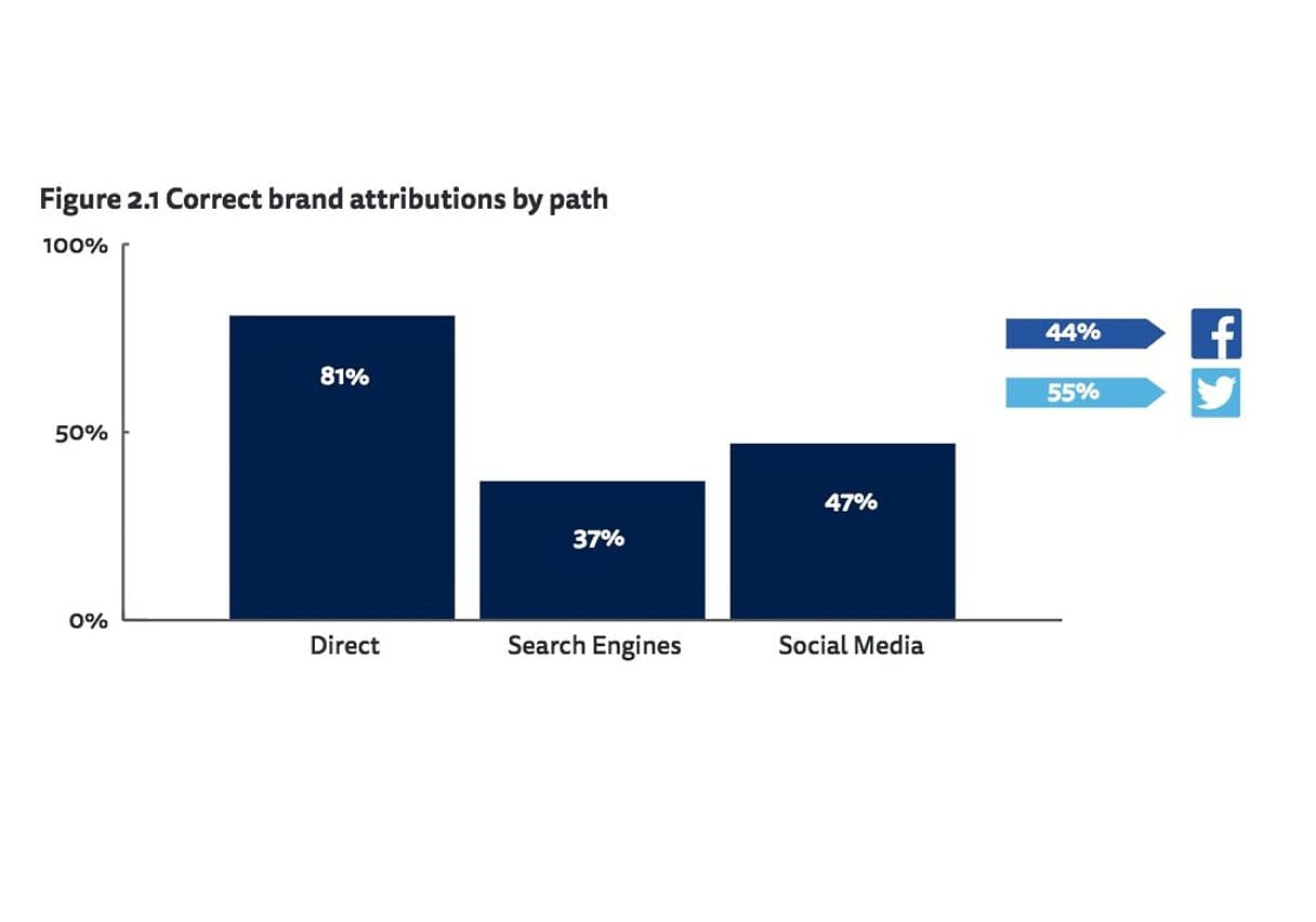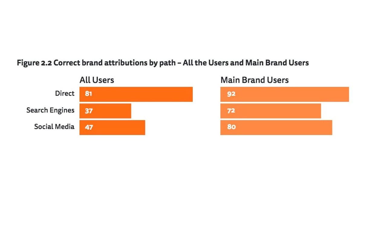 Sólo el 37% de los usuarios que hicieron una búsqueda, y el 47% de los que encontraron una noticia a través de las redes sociales lograron nombrar correctamente la organización de noticias que publicó el artículo (dos días más tarde). En comparación, el 81% de los usuarios que llegaron directamente a un artículo pudo recordar más adelante dónde fue publicado.