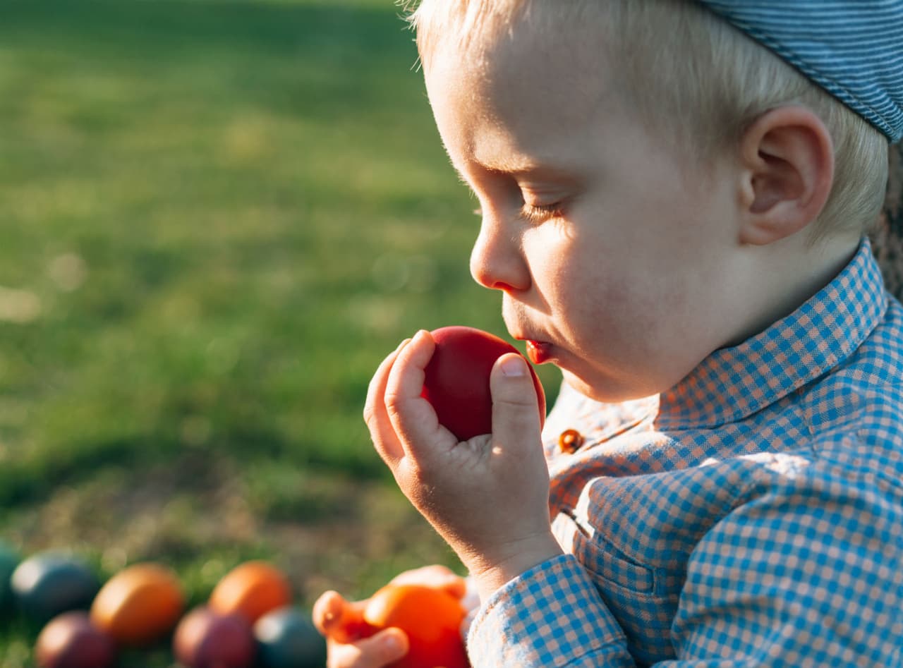 - Once your little one has learned to chew you can add their favorite snack to a few eggs. Since my son puts everything in his mouth I did a little research and found eco-friendly eggs that are safe for babies and yound children. I’m planning to add some cheerios and puffs to these.