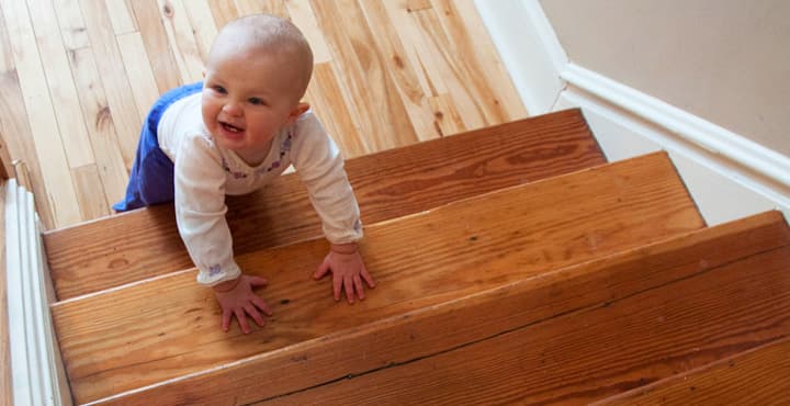 Staircases: Keep stairways clear; don’t place objects on the stairs or near the top of the stairs, so nobody trips. Also, install gates at either end of the stairs. Be sure to use gates that are properly installed and mounted to the wall and banister, especially at the top of the stairs, instead of a pressure-mounted gate.