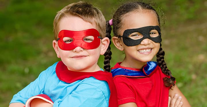 Easily one of the most recognizable characters of recent years, Harry Potter makes for an excellent, clever and easy costume choice. Dark rimmed glasses, a long black robe and a strategically placed lightning shaped scar on your child’s forehead will get you started. Round out this costume with a twig for a wand and a maroon colored scarf to represent Gryffindor (his school dorm) and your little wizard will be all casting spells before you know it.